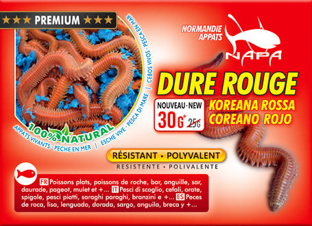 La Dure rouge est un appât ultra polyvalent et facile à utiliser. Elle a une très bonne résistance à l’hameçon grâce à sa fermeté. Sa vivacité et sa couleur rouge orangé attirent une incroyable variété de poissons.